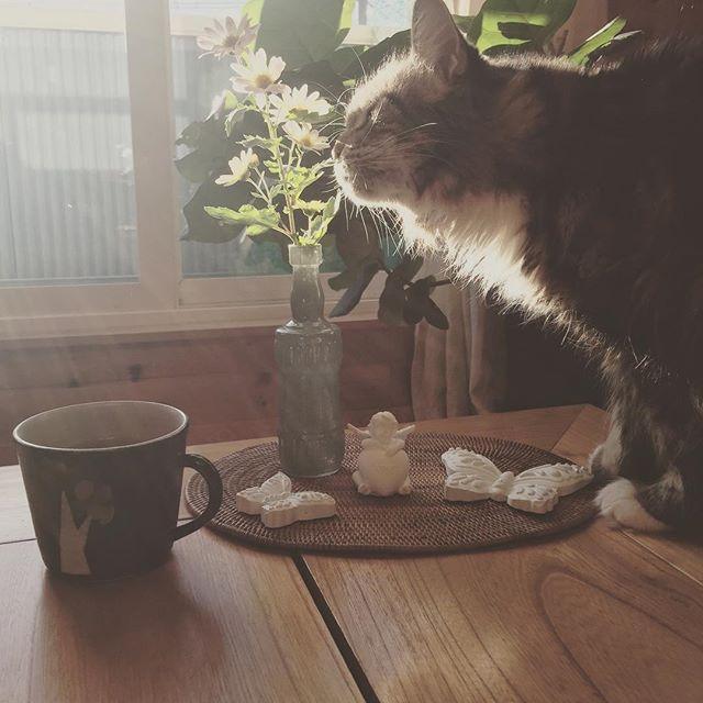 朝のティータイム♡ モデルさんが登場☆ お庭で咲く菊を飾ったら くんくんしてる。 でもたぶん 君が気にしているのは 石膏の蝶々に垂らした アロマオイルの匂いだと思う 先日フレデコステップアップ講座で 学んだ石膏ワークショップ♡ 石膏の愛しい ...